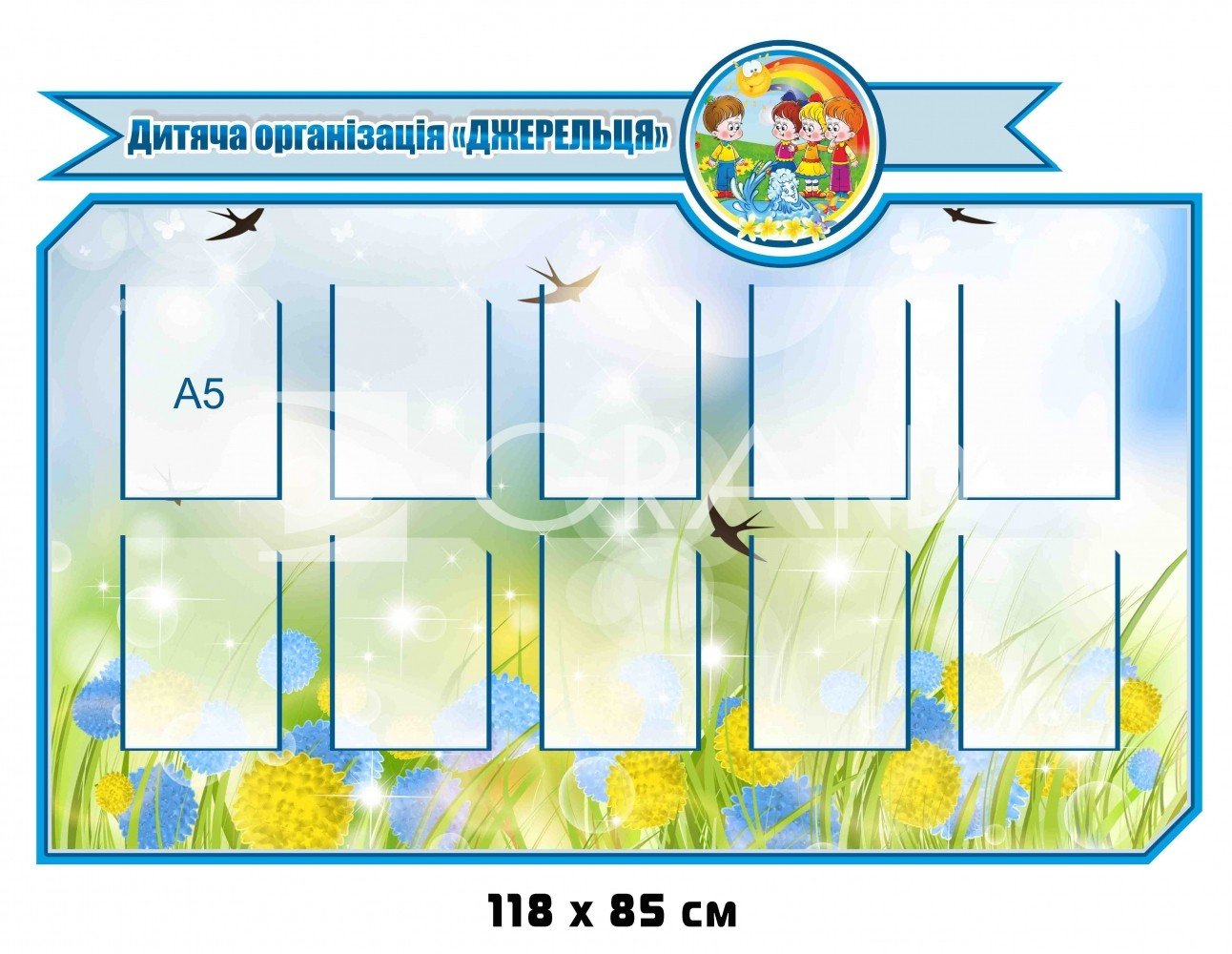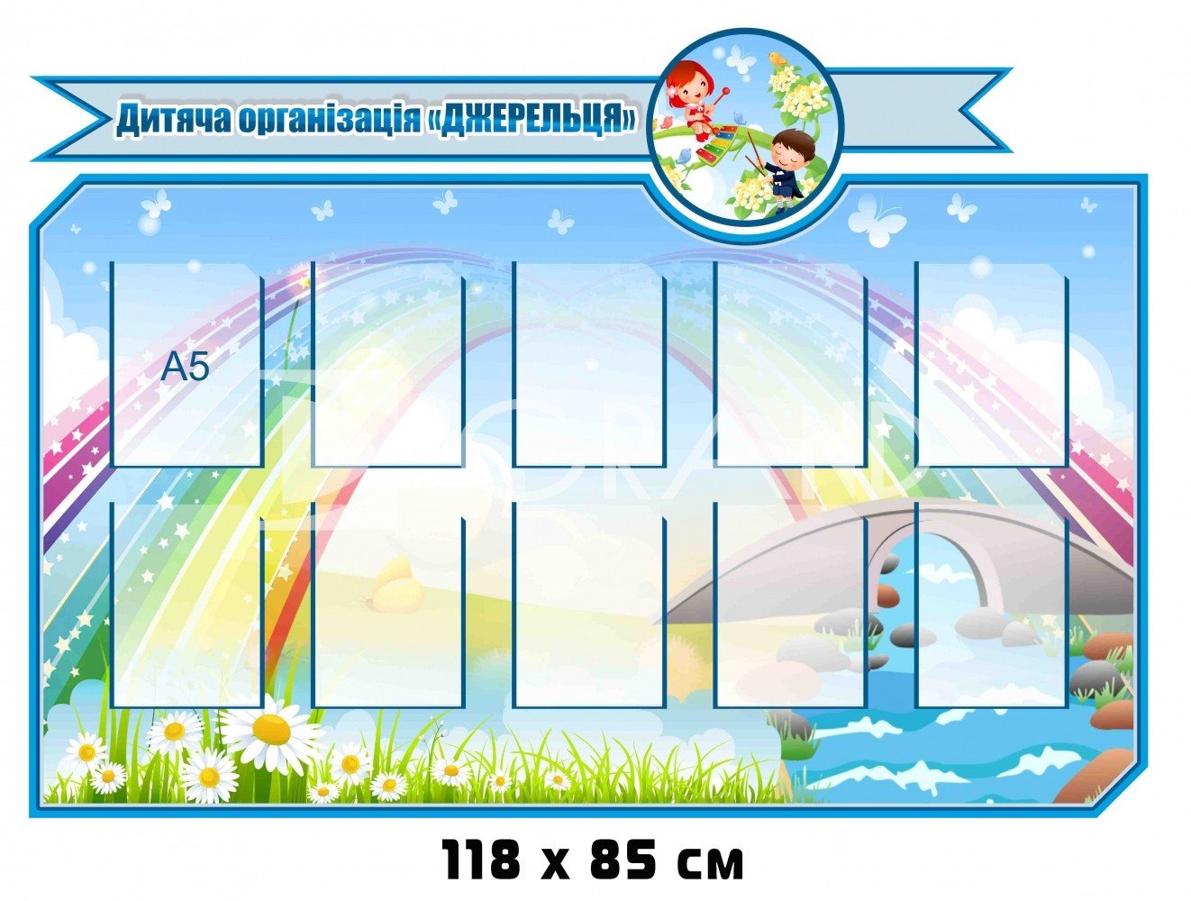 Інформаційний стенд "Дитяча організація 'Джерельце'" з кишенями є важливим інструментом для підтримки комунікації між учасниками, батьками та організаторами. Яскравий, зрозумілий та зручний у користуванні, він сприятиме популяризації діяльності організації, підвищенню мотивації дітей та залученню нових учасників.