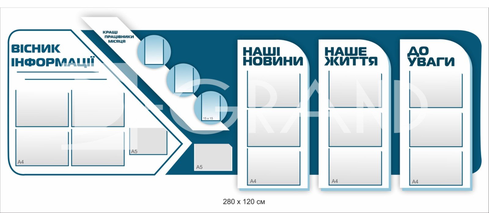 - Стенди покриваються плівкою з повнокольоровим друком.