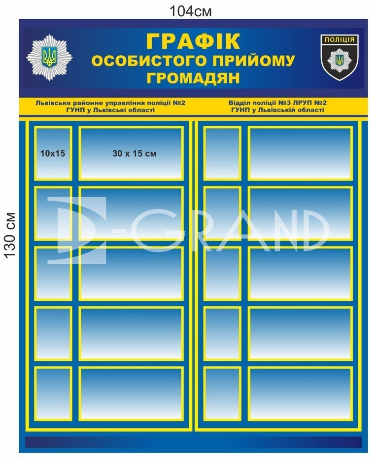 Щоб купити Стенд для поліції "Графік особистого прийому громадян", вам досить натиснути кнопку «купити» на сайті. Наш менеджер зв'яжеться з вами найближчим часом. Або ви можете зателефонувати за телефонами 097-171-44-58, 050-939-45-46