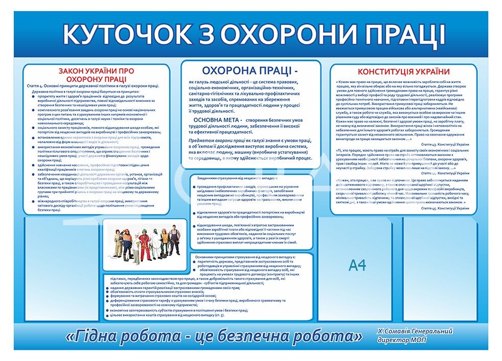 - Стенди покриваються плівкою з повнокольоровим друком.