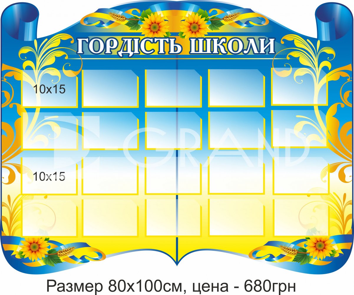 Замовте стенд "Гордість школи" - жовто-блакитний на сайті D-Grand прямо зараз і підкресліть важливість вашої школи, її досягнення та колективний дух.