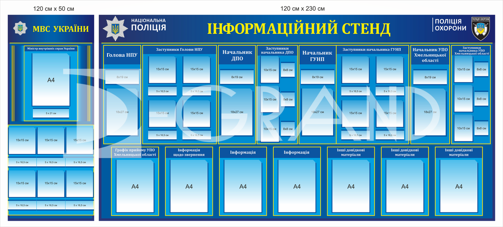 - Стенди покриваються плівкою з повнокольоровим друком.