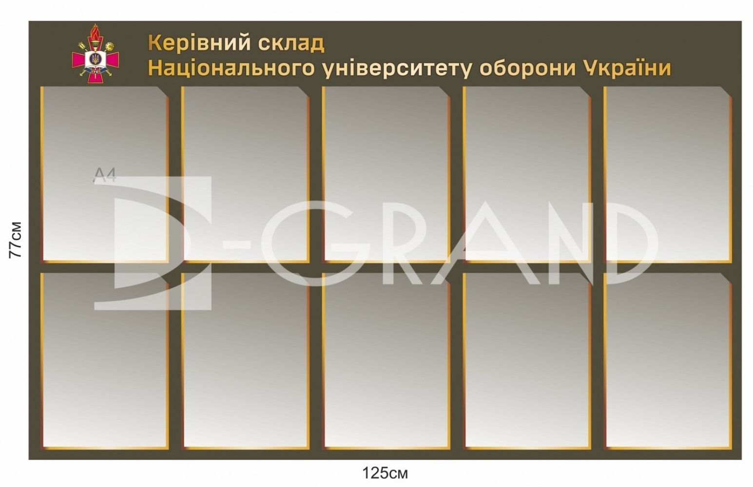 Стенд "Керівний склад Національного університету оборони України" відіграє важливу роль у ознайомленні студентів, викладачів та відвідувачів з провідними особами університету. Він містить інформацію про основних керівників, їхні посади, обов'язки та контактні дані.