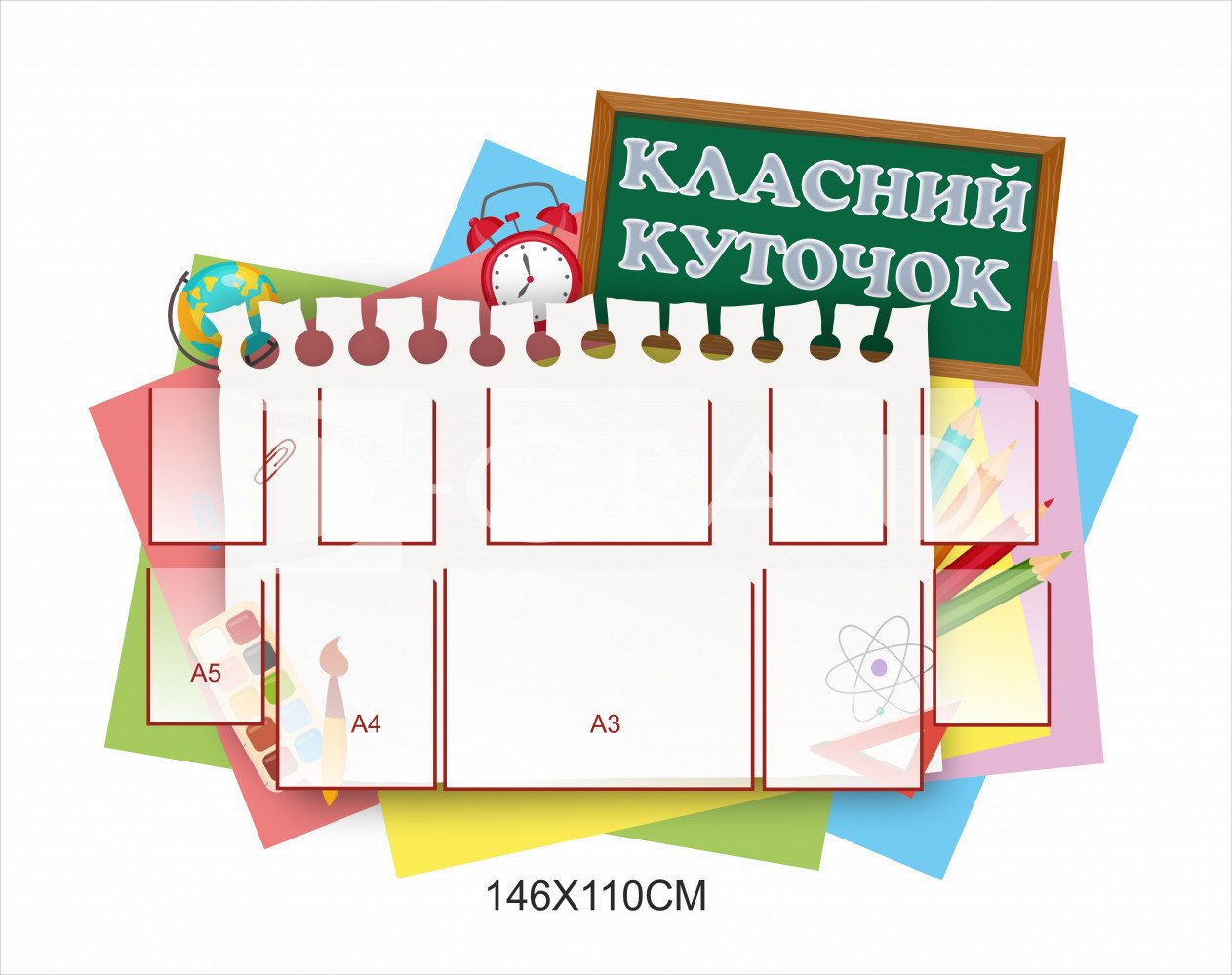 - у комплекті ви отримаєте спеціальні канцелярські цвяхи, за допомогою який Ви можете закріпити стенд до стіни.