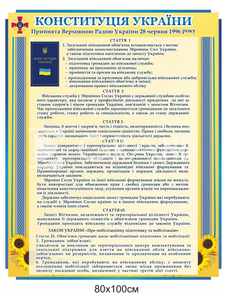 Стенд "Конституція України" Статті 1, 2, 3, 17, 65