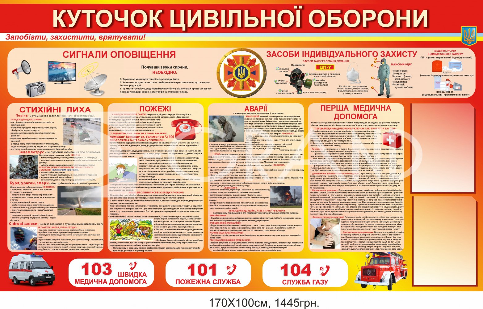 Стенд "Куточок цивільної оборони" - Запобігати, захистити, врятувати