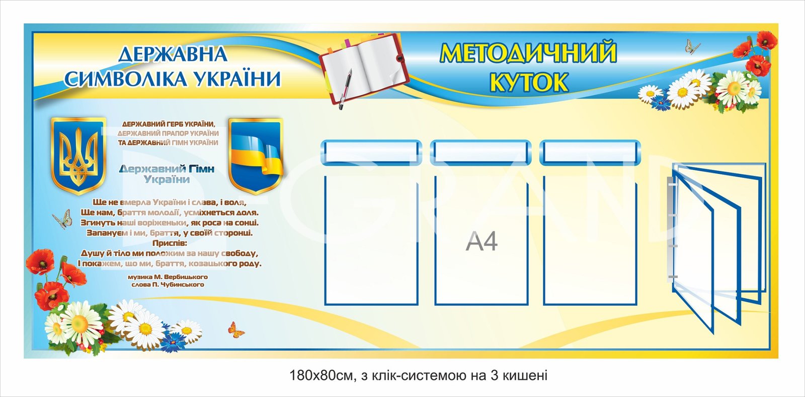Методичний куточок з державною символікою від D-Grand допоможе вам створити особливу атмосферу патріотизму та почуття належності до вашої країни. Наш стенд забезпечує зручне та естетичне розміщення державних символів, таких як прапор, герб, гімн та інші елементи, що відображають національну ідентичність. Використовуйте цей методичний куточок для освітніх закладів, патріотичних заходів, урочистостей або будь-яких інших спеціальних подій, де важливо підкреслити значення державних цінностей та виховання патріотичного духу. Замовте методичний куточок з державною символікою від D-Grand прямо зараз і відчуйте національну гордість, співпрацюючи з якісними та надійними матеріалами.
