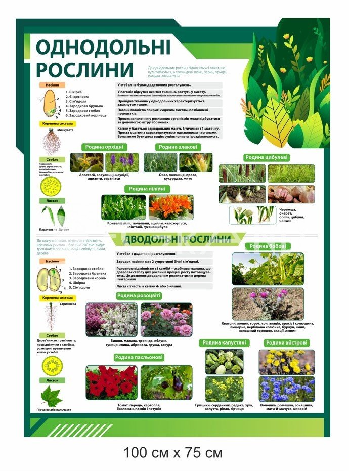 Замовляйте стенд "Однодольні та дводольні рослини" прямо зараз! Це інвестиція в якісну освіту ваших учнів.