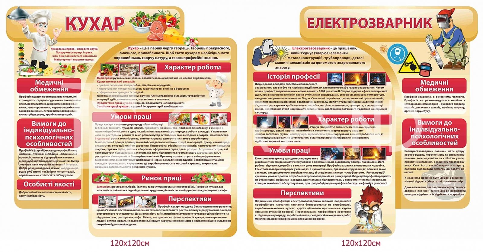 Комплект стендів з профорієнтації «Кухар, Електрозварник»