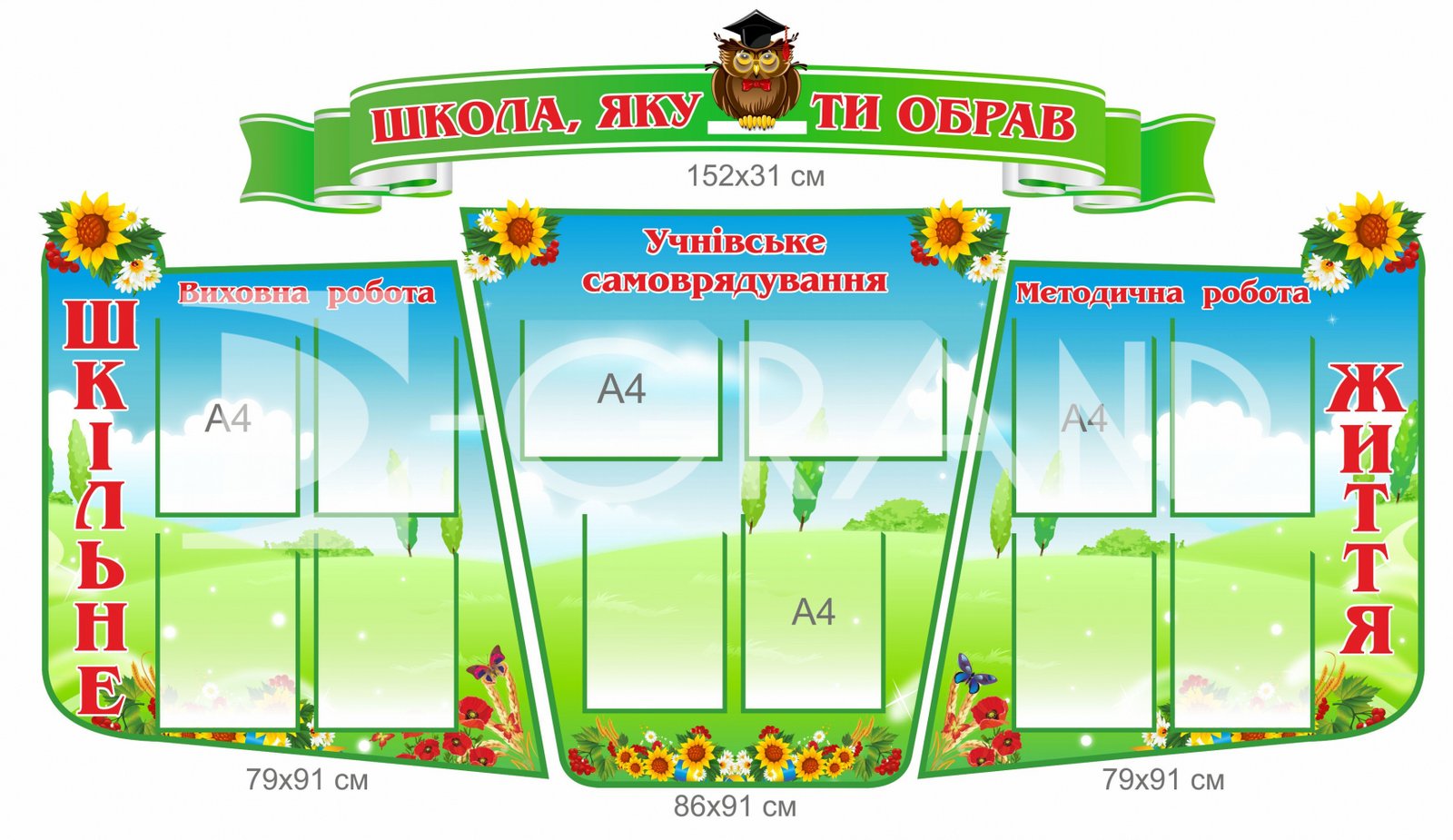 - Стенди покриваються плівкою з повнокольоровим друком.