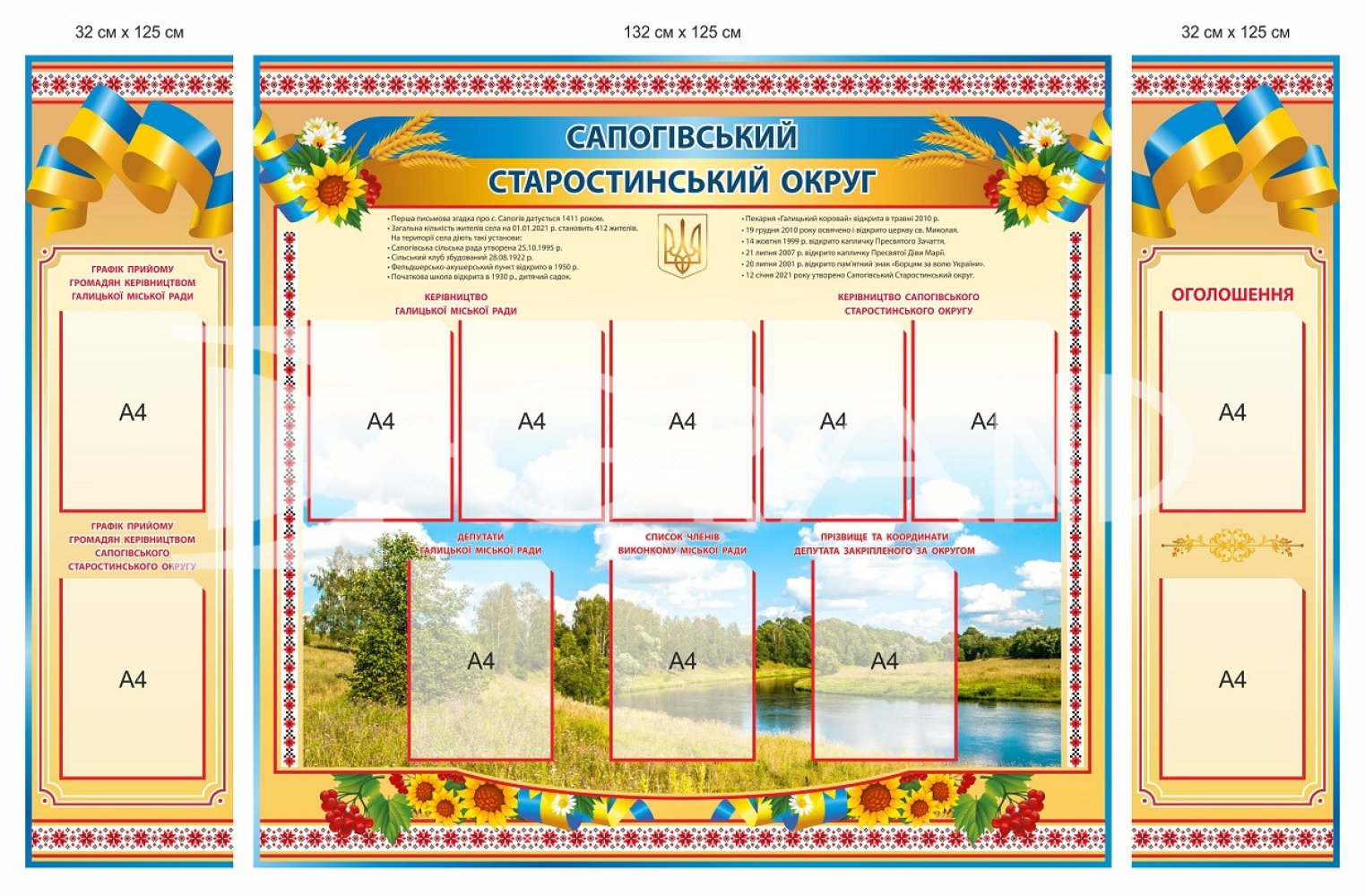 - Стенди покриваються плівкою з повнокольоровим друком.