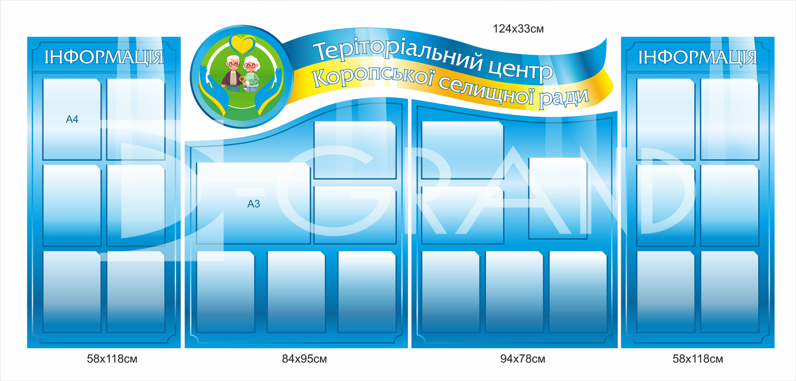 - Стенди покриваються плівкою з повнокольоровим друком.