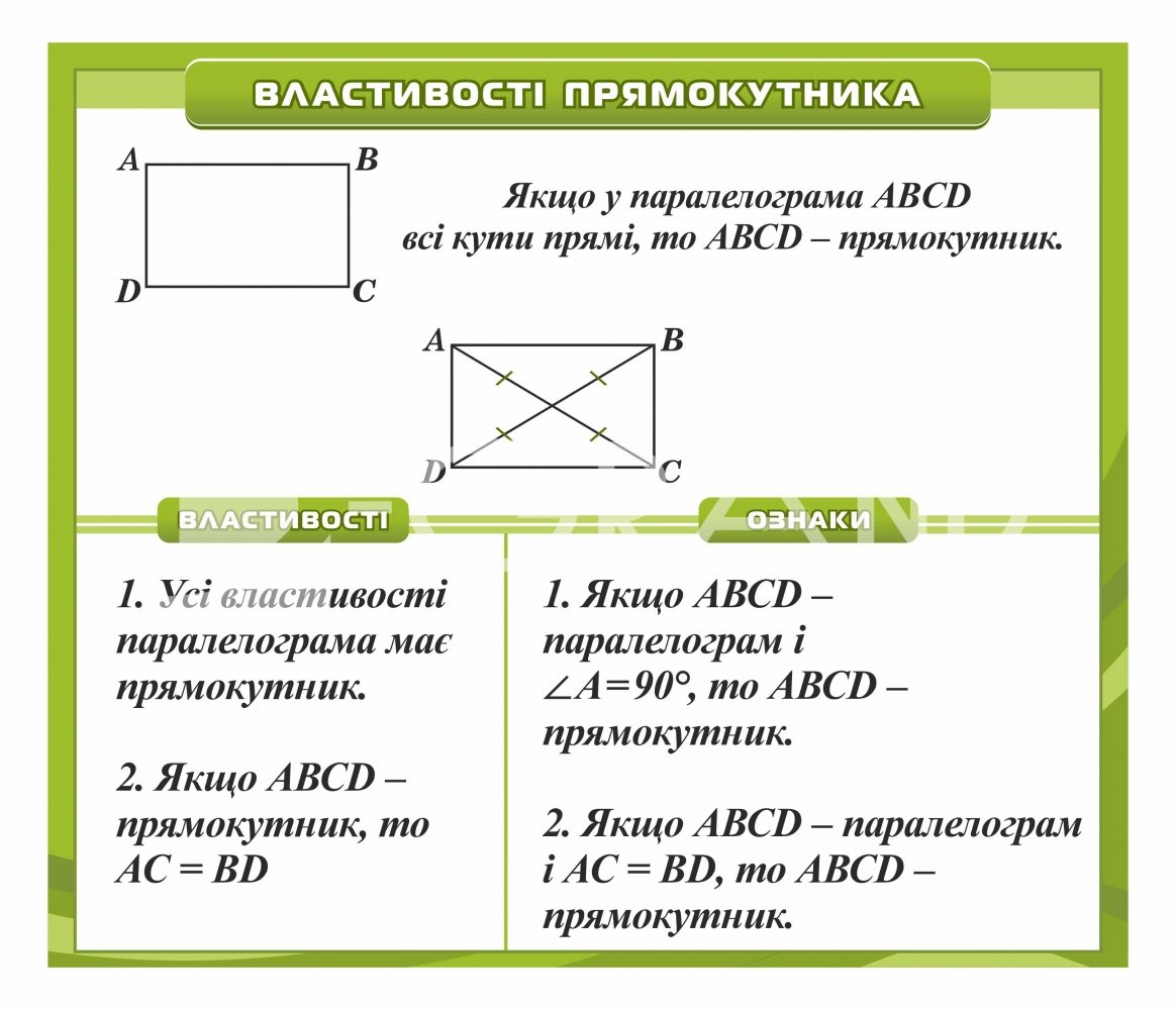 Стенд "Властивості прямокутника. Ознаки прямокутника"