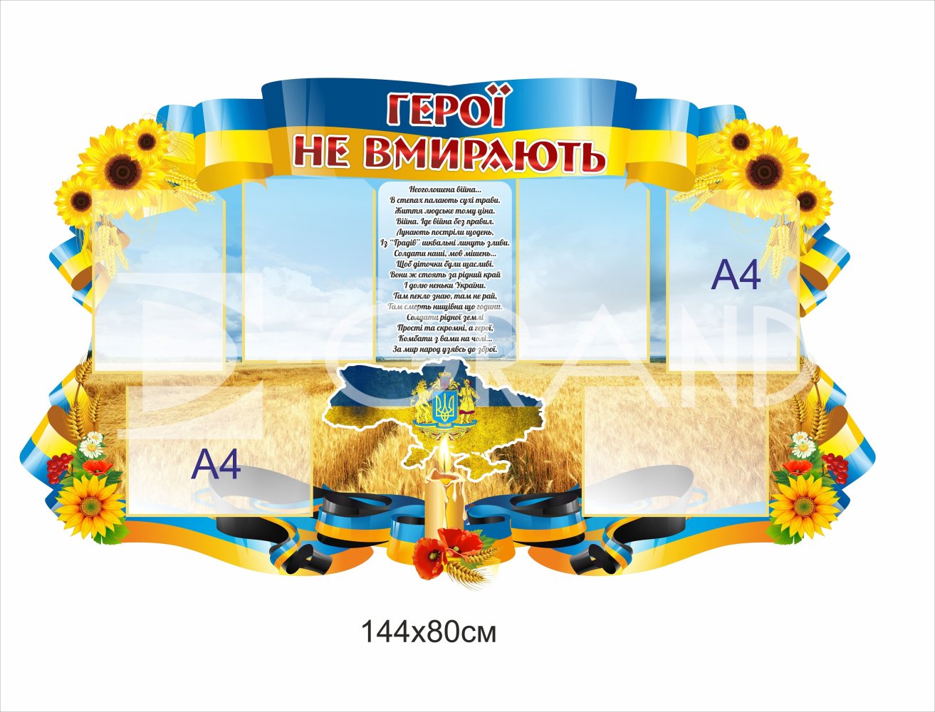 - Стенди покриваються плівкою з повнокольоровим друком.