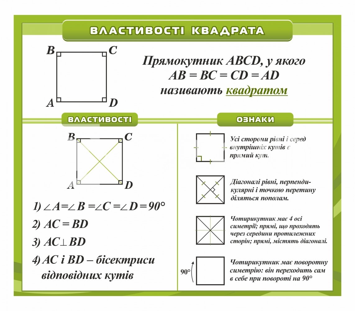 Стенд з математики "Квадрат. Ознаки та властивості"