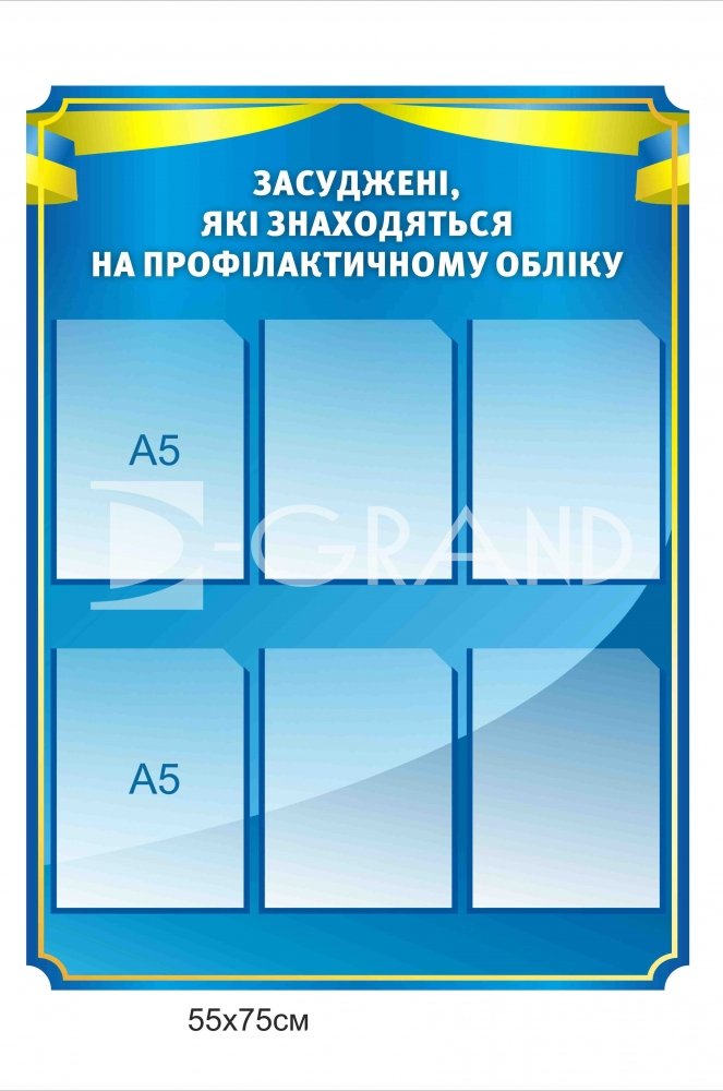 Стенд "Засуджені, які знаходяться на профілактичному обліку" з кишенями є важливим елементом підтримання безпеки в установах виконання покарань. Він дозволяє персоналу бути обізнаним щодо осіб, які потребують особливого контролю, та сприяє ефективній організації роботи з такими засудженими.