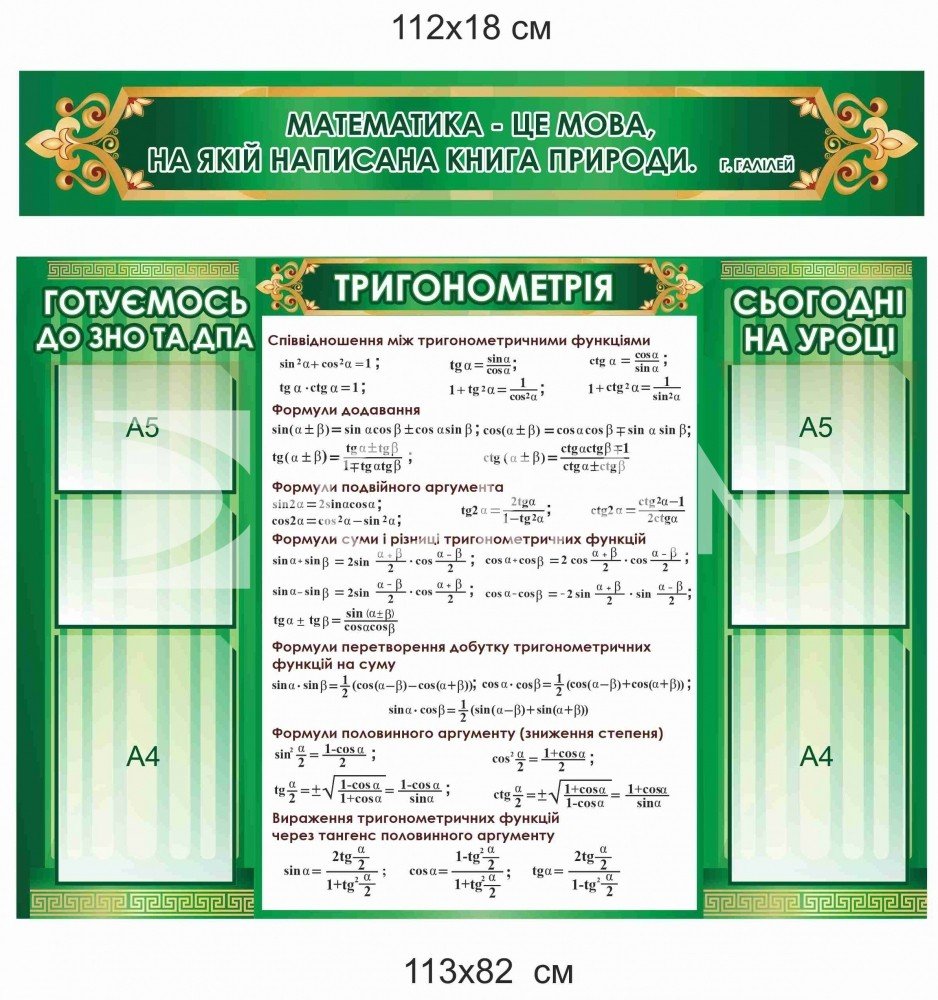 Також широкий асортимерт стендів в кабінет математики Ви можете знайти на stend-osvita-ukraine.com