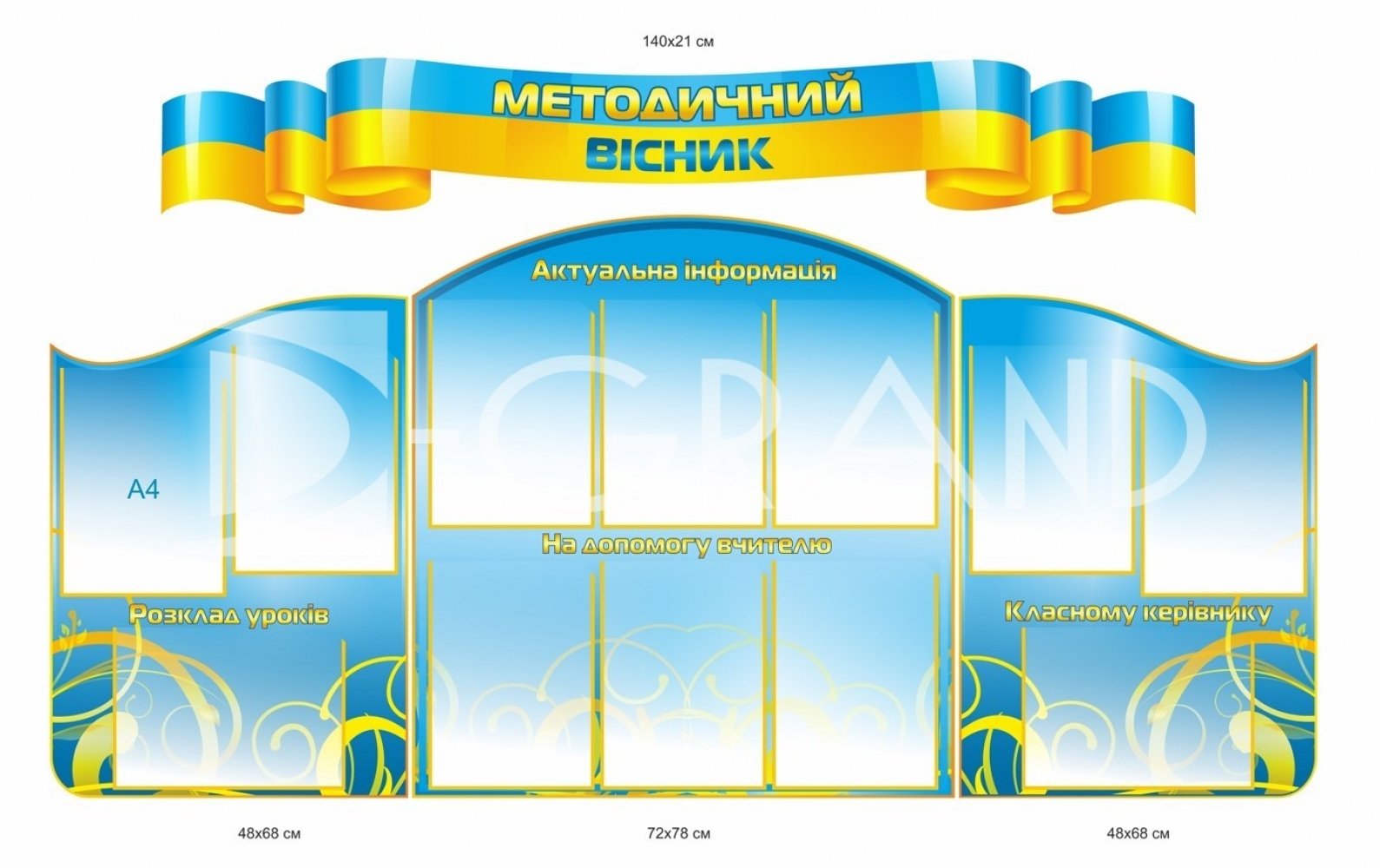 - Стенди покриваються плівкою з повнокольоровим друком.