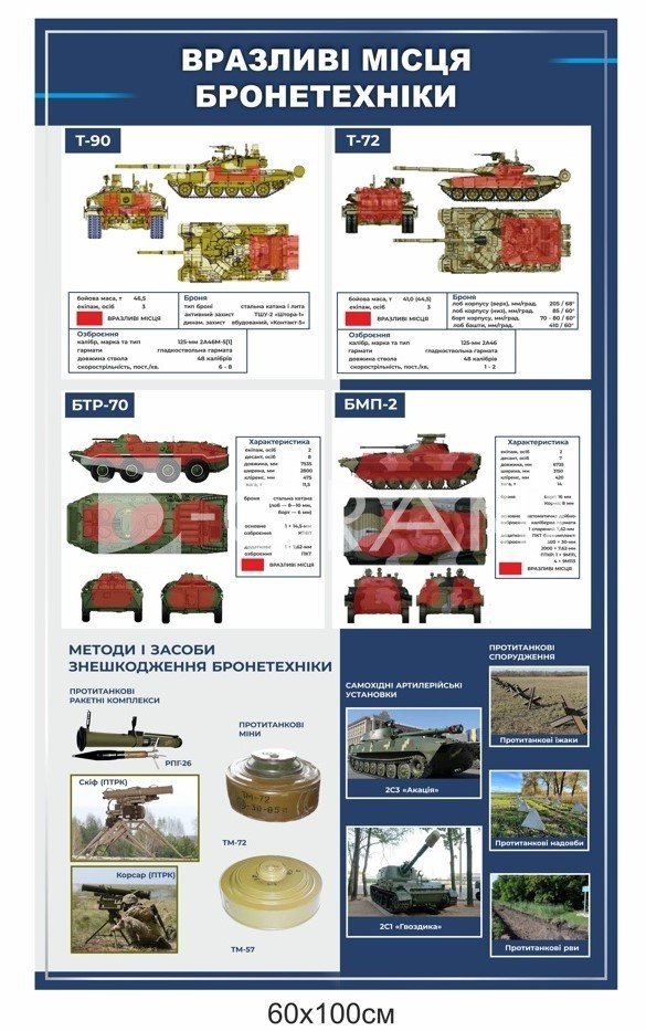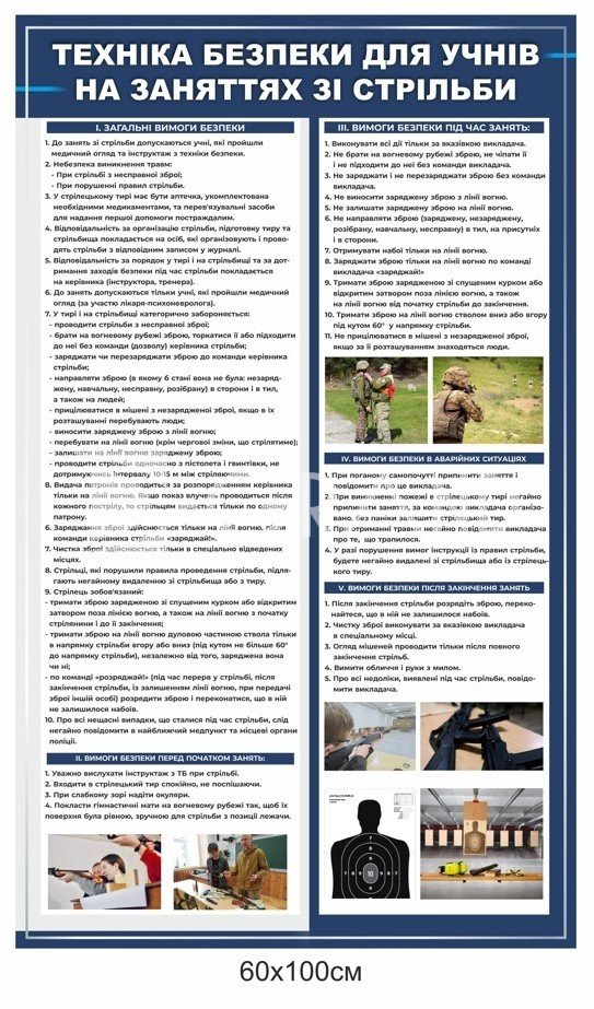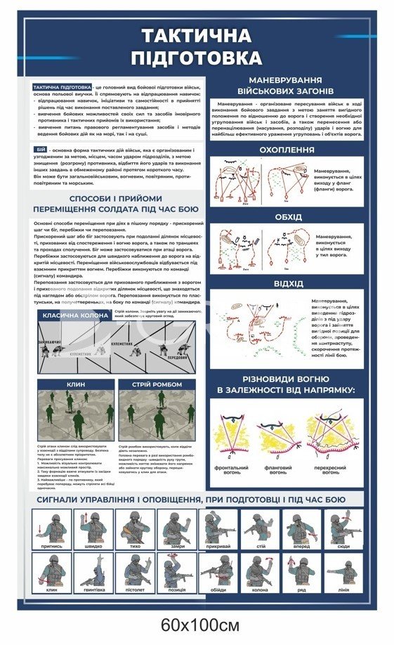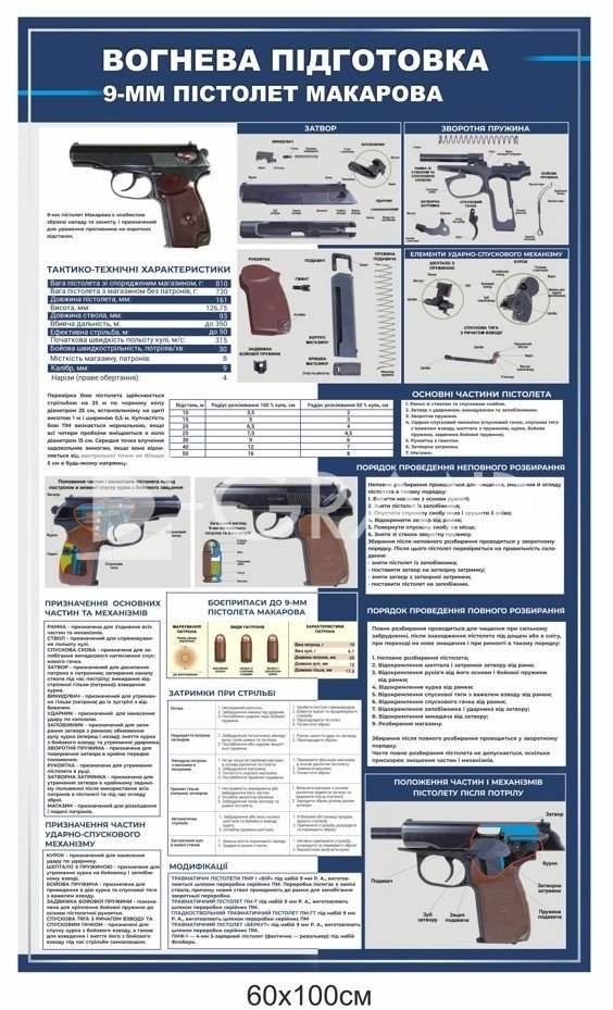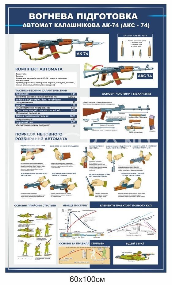 Стенди "Вогнева підготовка, тактика та засоби ураження" – це інформаційні матеріали для військових навчальних закладів, підготовчих курсів, територіальної оборони та силових структур. Вони містять докладну інформацію про вогневу підготовку, будову та характеристики стрілецької зброї, тактику ведення бою, правила безпеки під час стрільб, мінну безпеку та засоби масового ураження. Наші стенди допомагають ефективно навчати особовий склад та підвищувати рівень військової грамотності. Можливе індивідуальне оформлення під потреби замовника. Замовляйте стенди для військової підготовки на D-Grand з доставкою по всій Україні.