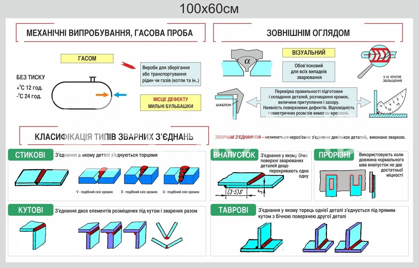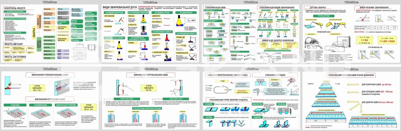 Стенди зварювальних робіт: класифікація, технологія та контроль якості – це сучасні навчальні посібники для кабінетів трудового та виробничого навчання. Вони допомагають учням засвоїти базові знання про процеси зварювання та правила контролю готових з’єднань.