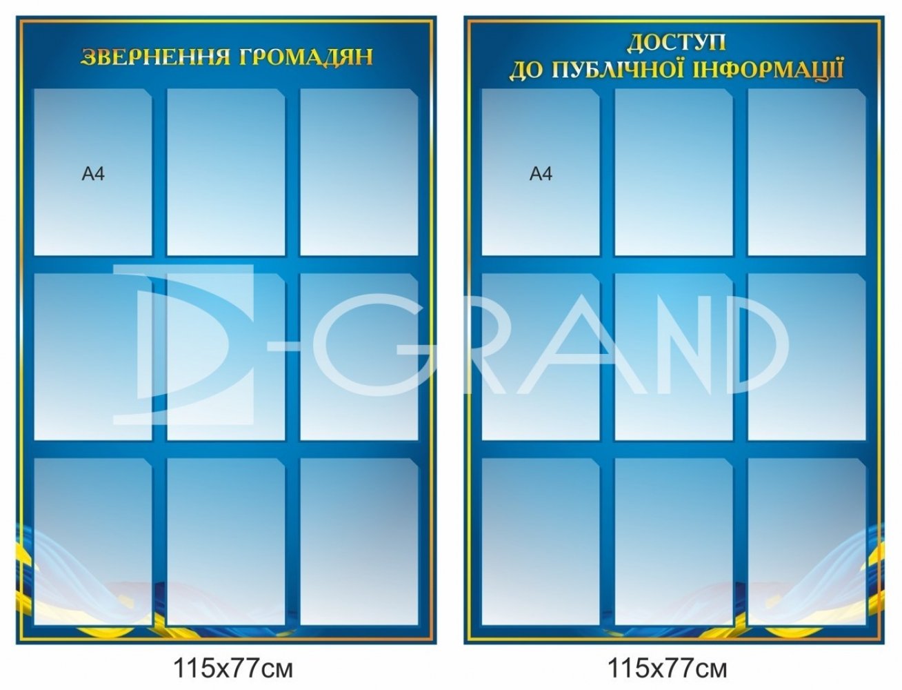Замовте стенди «Звернення громадян» та «Доступ до публічної інформації» на нашому сайті – і ви отримаєте якісний продукт, який допоможе забезпечити відкритість, прозорість та відповідність вимогам чинного законодавства.